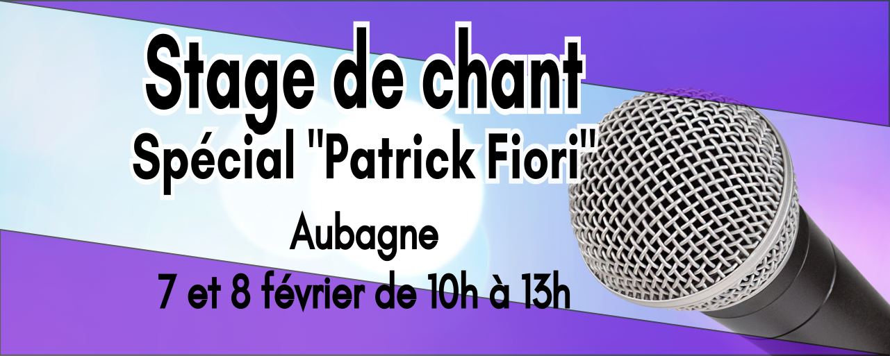Nous vous proposons un stage de chant sur le répertoire de Patrick Fiori les 7 et 8 février 2026, de 10h à 13h à Aubagne. Retrouvez nous au 59 rue des 4 Termes 13400 Aubagne “La Maison de Réjane”.